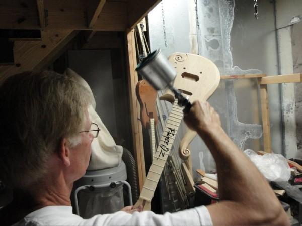 A new unfinished black cloud guitar being created by L.T. and yes, he said it's for sale!